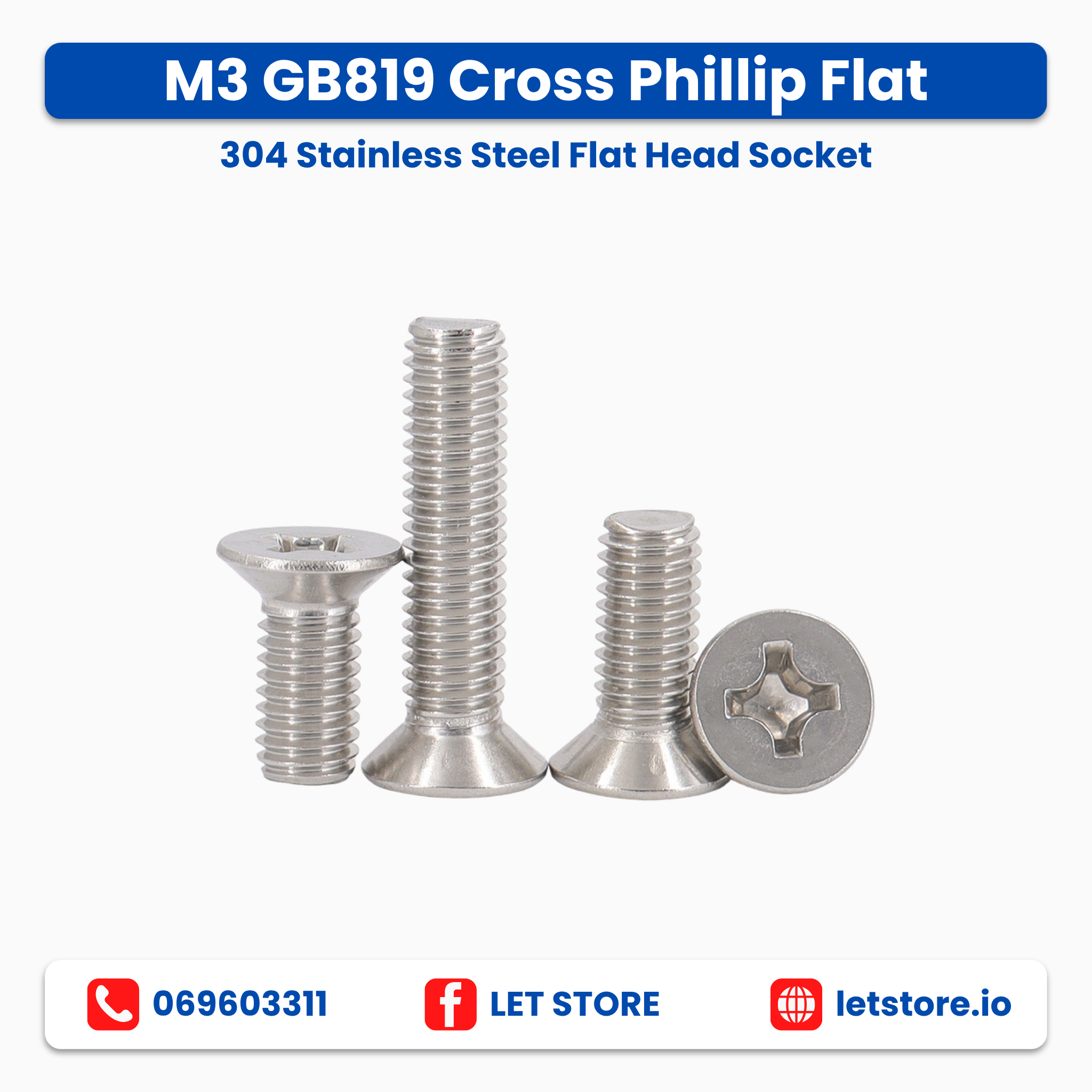 M3 Cross Phillip Flat 304 Stainless Steel