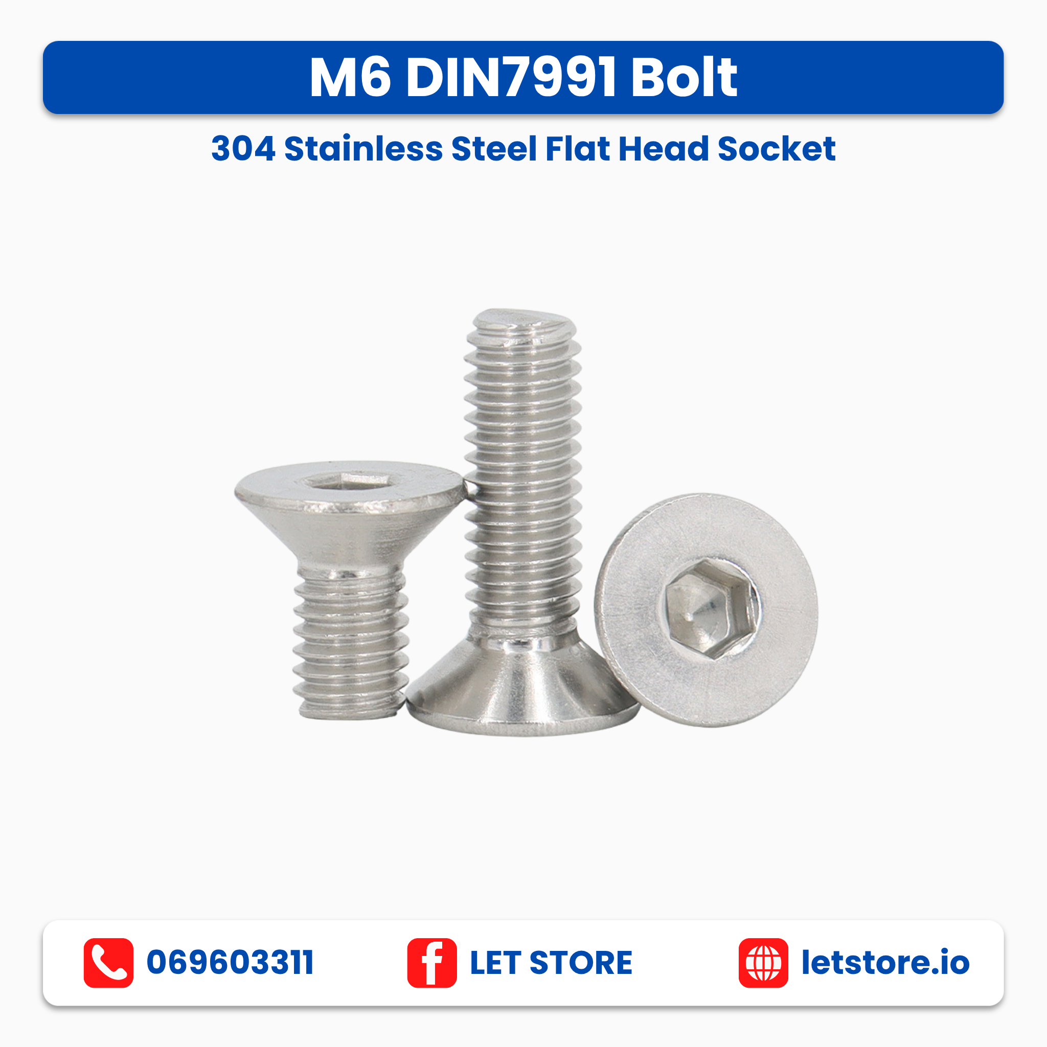 ខ្ចៅ M3 DIN7991 Bolt 304 Stainless Steel Flat Head Socket